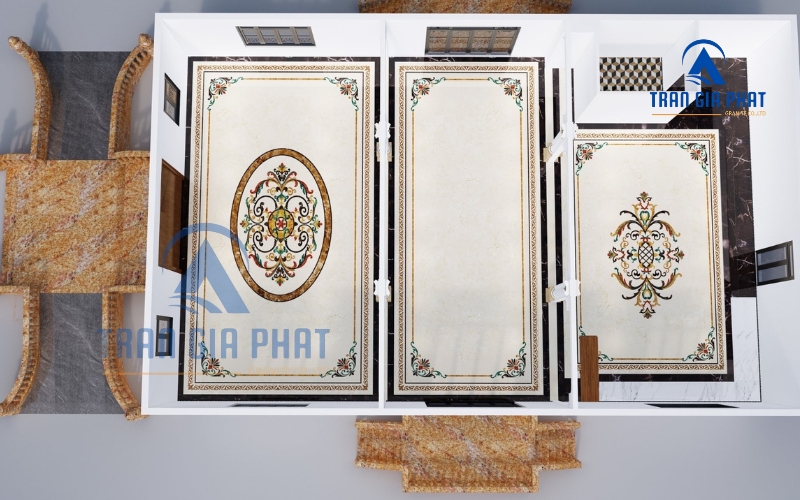 CNC công nghệ gia công sắc nét: Việc ứng dụng máy cắt CNC kỹ thuật số hiện đại giúp tạo ra hoa văn trên đá với độ chính xác gần như tuyệt đối, đảm bảo các chi tiết sắc sảo đến từng góc cạnh. Công nghệ CNC cho phép cắt ghép đá theo thiết kế trên máy tính, hoa văn đồng bộ tuyệt đối giữa các tấm. Nhờ đó, các mẫu hoa văn đá CNC tối giản có độ lặp lại và đối xứng hoàn hảo, không sai lệch, tạo nên tổng thể hài hòa cho sàn nhà hay mảng tường trang trí.