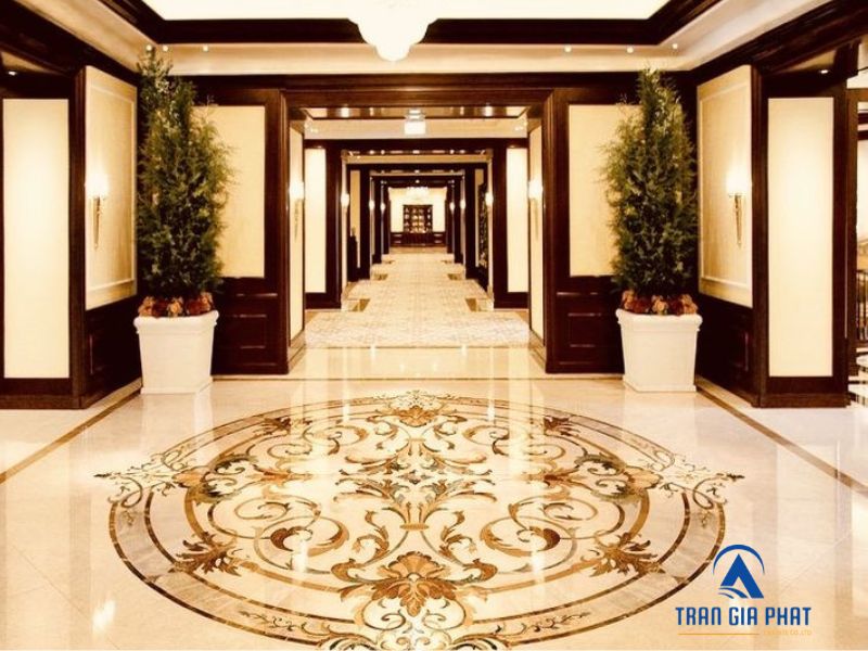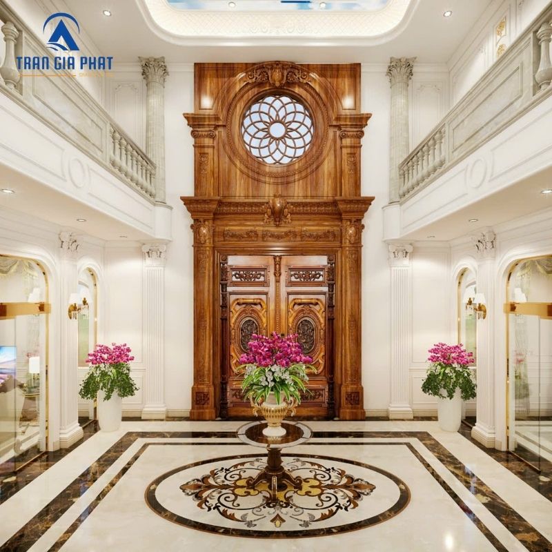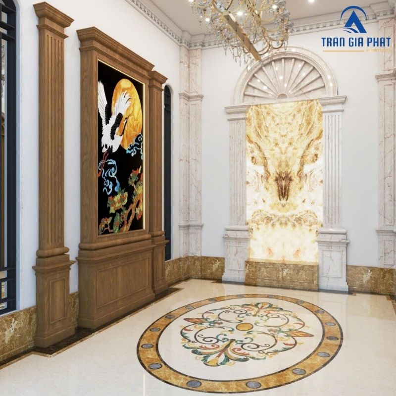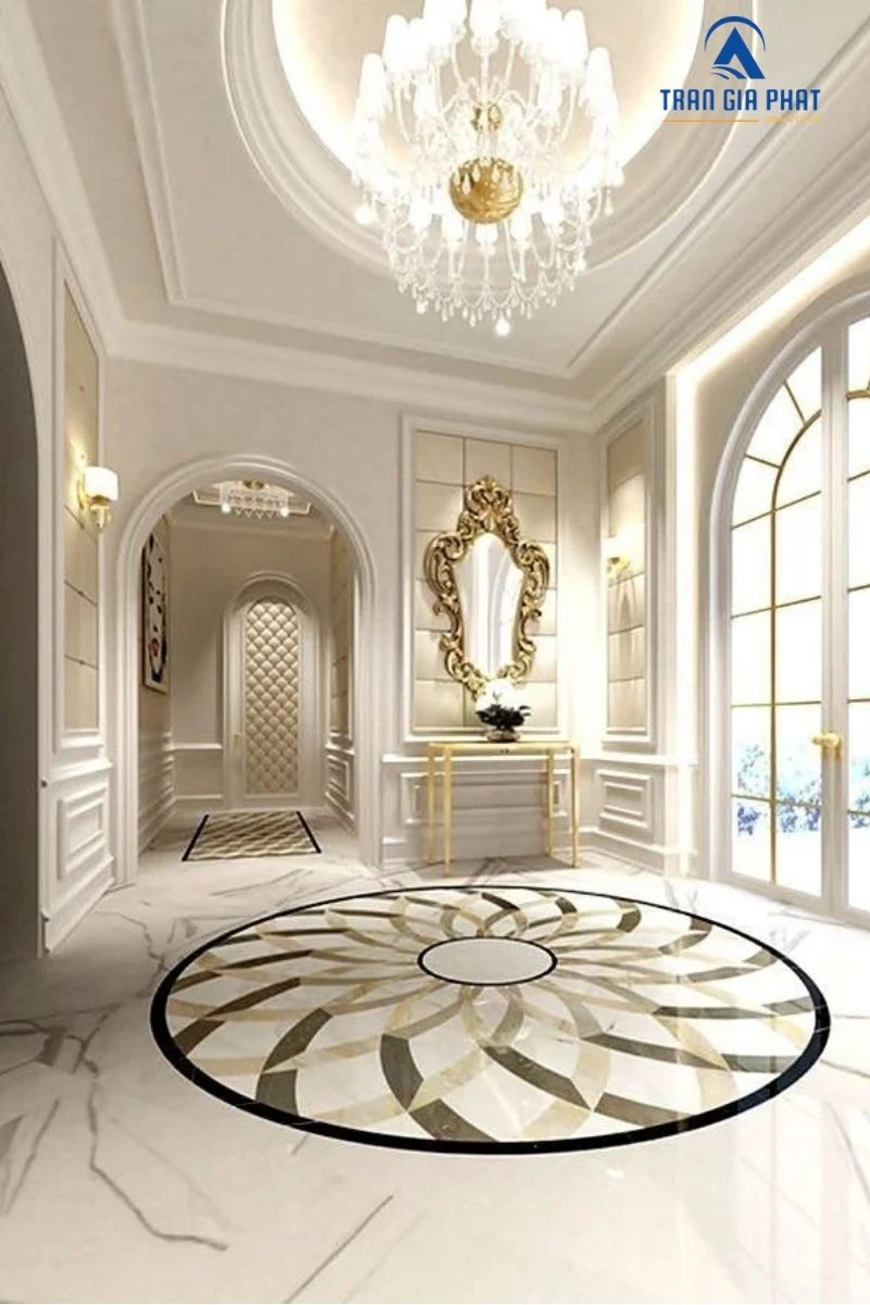 Theo quan điểm phong thủy hiện đại, nơi nào ánh nhìn hội tụ, nơi đó khí hội tụ. Việc lát đá hoa văn ngay trung tâm sảnh không chỉ khiến không gian trở nên nổi bật, khác biệt và có chiều sâu thẩm mỹ, mà còn tạo ra một điểm tụ vượng khí, nơi tất cả các dòng năng lượng hướng về. Chính hiệu ứng này góp phần giúp sảnh chính vừa có thần khí, vừa có tài khí.