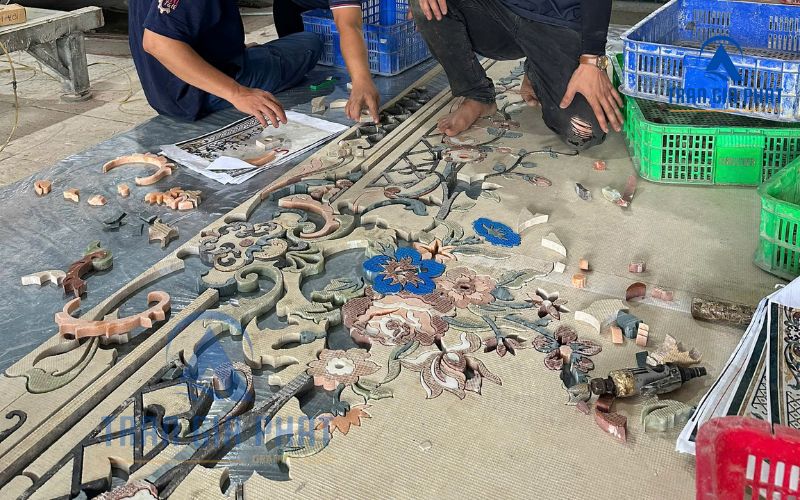 Lưu ý: Quy trình có thể điều chỉnh tùy đặc thù từng dự án, nhưng nhìn chung các bước từ thiết kế, chọn đá, gia công CNC, lắp đặt đến nghiệm thu đều rất quan trọng để đảm bảo chất lượng và thẩm mỹ của đá hoa văn.