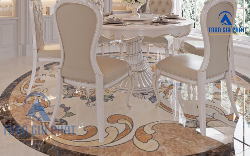 Sàn nhà lát đá hoa văn CNC được ví như những “tấm thảm đá” bền đẹp vĩnh cửu, vừa bảo vệ sàn vừa trang trí không gian nổi bật. Một số ứng dụng tiêu biểu: