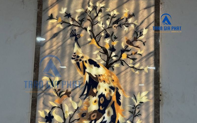 - Tranh đá CNC treo tường: Ngoài ốp toàn mảng tường, xu hướng sử dụng tranh đá điêu khắc CNC cũng rất được ưa chuộng. Đây là những bức tranh làm từ đá tự nhiên được cắt ghép CNC theo chủ đề phong cảnh, mandala hoặc hoa văn trừu tượng do khách hàng lựa chọn. Tranh đá thường được ốp vào tường phòng khách, đại sảnh, tạo điểm nhấn nghệ thuật sống động. Với độ bóng và màu sắc tự nhiên của đá, tranh đá CNC vừa bền đẹp lại trường tồn không phai, khác hẳn tranh vẽ hay ảnh in thông thường.